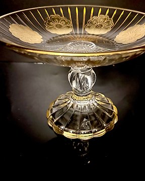 antica cristalleria italiana - La maison du Lia - 水果盘 - meravigliosa fruttiera incisa a pantografo, soffiata e decorata a mano - 24K金起拍价€1