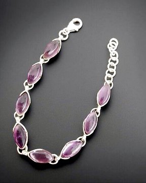 紫水晶与925千分之一纯银手链。天然宝石。 高品质手工装配- 8 g