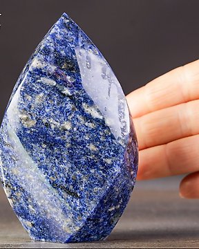 手工雕刻的苏达石火焰——深蓝色天然石雕塑 - 高度: 106 mm - 宽度: 65 mm- 365 g
