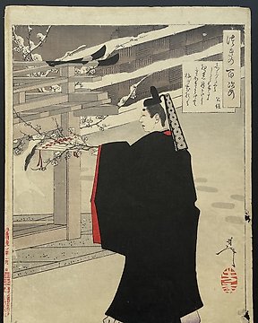 Fujiwara no Kinto Plucks a Plum Blossom - Yoshitoshi Tsukioka (1839-1892) - 日本 - Meiji period (1868-1912) (没有保留价)当前出价€10