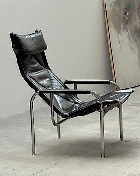 Strässle - Hans Eichenberger - 扶手椅子 - 皮革,钢管铬 - Kippsessel & Ottoman