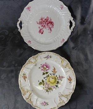 Meissen - E. A. Leuteritz - 盘子 - Prunkteller/Prunkschale Ø 24,2 cm Blauer Fond mit Blumenmalerei und Goldbronze - 瓷当前出价€150