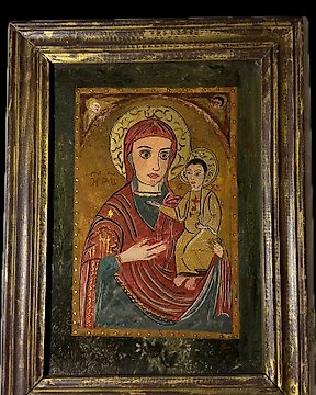 Erwin Huber - 浮雕, Madonna mit Kind 1988 bezoek Paus Paulus II aan Oostenrijk - 16.5 cm - 黄铜色 - 1988起拍价€1