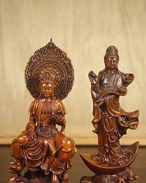 Two boxwood Guanyin Bodhisattva - 木 - 中国 (没有保留价)