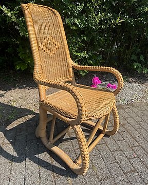 靠背椅 - 藤 - 80年代原装手工竹制藤椅