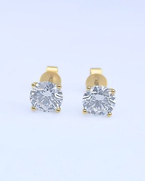 小型钉状耳环 - 14K包金 白金 - 2.01ct. tw. - 钻石 - 两个IGI证书