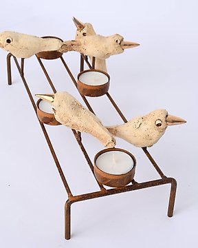 Ewa Budzowska - 雕塑, O RESERVE - Candleholder with birds - 33 cm - 金, 海泡石, 陶瓷 - 2024