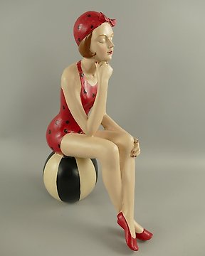 Francois Arvi - 小雕像, Très grande baigneuse avec ballon 38 cm°ART NOUVEAU - 38 cm - 复合材料