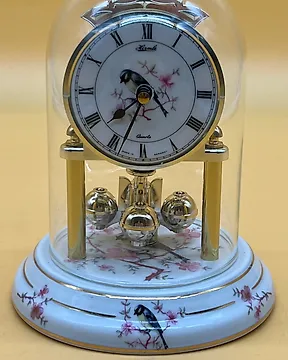 时钟 - Kieninger & Obergfell (Kundo) – Drehpendeluhr mit Glashaube und Vogelmotiv – Porzellan - 瓷 - 1980-1990当前出价€25仅剩1天了