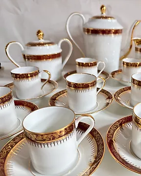 LIMOGES, " Liseré Or et Bordeaux", Luxe - ARNAUD de VIGNAUD - 咖啡桌 (27) - 十二人专属桌上服务 - 瓷, 镀金 - 真正的 Limoges当前出价€86还剩 7 小时
