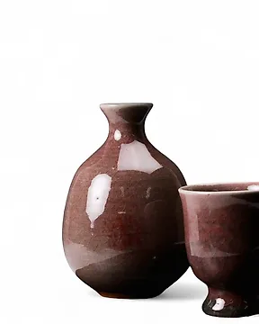 Munemasa Yoshiaki 红釉清酒套装——徳利瓶与盅子杯组合 - 瓷 - Munemasa Yoshiaki - 日本 - Shōwa period (1926-1989)当前出价€3还剩3天