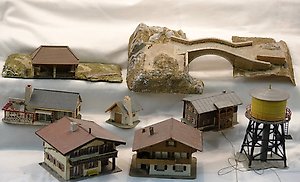 Faller, Märklin, Noch, Preiser H0轨 - 模型火车建筑物 (1) - Diorama Seinhuis,架空线 Rots 景观,风化的绿色,作为展示或布局的一部分。当前出价€105