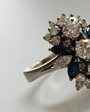 鸡尾酒戒指 - 18K包金 白金 - 蓝宝石 - Mid Century