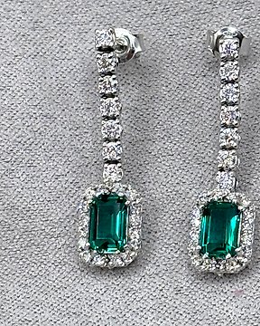 吊式耳环 - 18K包金 白金, 黄金 - 3.30ct. tw. 祖母绿 - 钻石 - 3 厘米长度