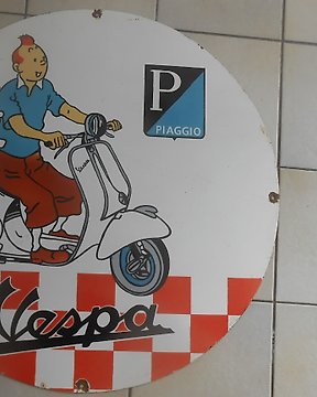 丁丁骑着他的Vespa - Hergé - 搪瓷标牌 - 搪瓷