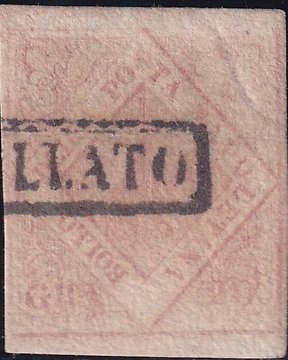 意大利古城邦-那不勒斯 1858 - 那不勒斯王国的徽章,三色旗碎片,带有1颗粉色谷粒、2颗浅粉色谷粒和10颗粉色谷粒。 - Sassone n.3, 5, 10