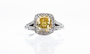 大戒指 - 18K包金 白金 - 1.08ct. tw. 黄色 钻石 (天然色彩的) - 钻石