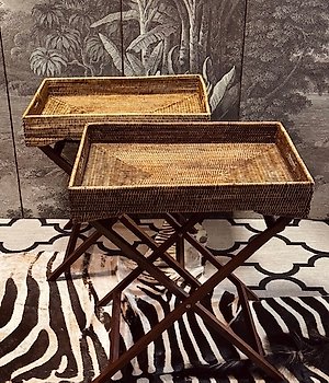 Flamant - 边桌 (2) - 藤, 木 - Birma riet, butlertray