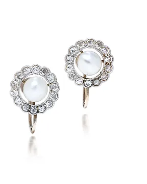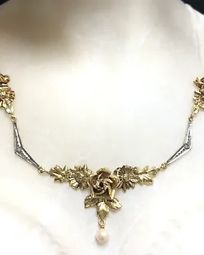沒有保留價 - 頸鏈 - 18 克拉 黃金, 白金 - 0.02ct. tw. 鉆石 (天然) - 珍珠 - 1920年代