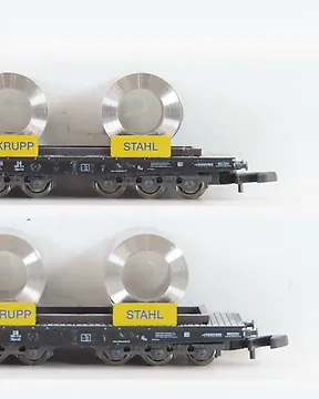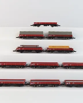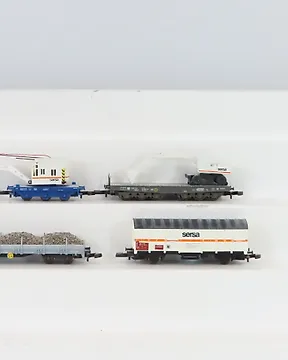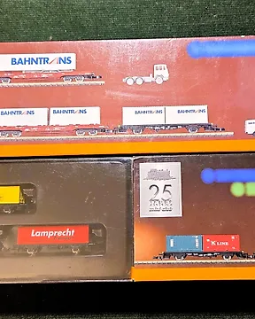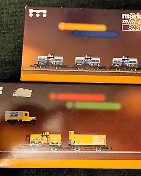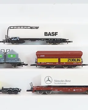 Märklin Z - 82503 / 82360/autre - 模型貨運火車組合 (10) - 可见的Märklin mini-club平车和集装箱组合,包括盒子和道路车辆。 - DB現時出價€65