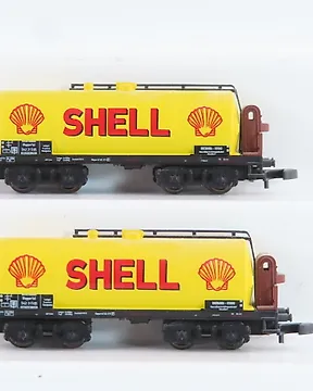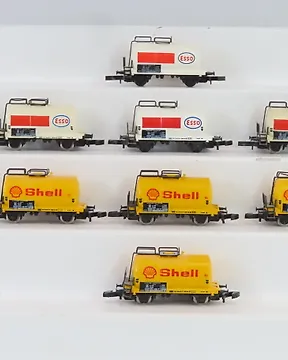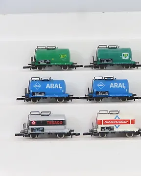 Märklin Z - 8613/8614/8629/8659/8694 - 模型貨運火車 (9) - 9个带有‘Aral’、‘BP’、‘Texaco’、‘VTG’和‘Bad Reichenhalter’标志的二手锅炉车。 - DB現時出價€45