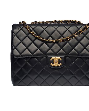 Chanel - Matelassé Coco Mark Double Flap Shoulder Bag – Black Lambskin with 24K Gold-Plated Hardware - 挎包