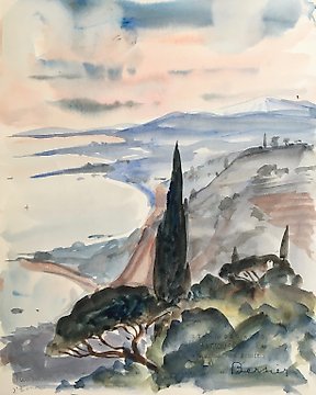 Jean-Eugène Bersier (1895-1978) - Taormine, l'Etna - Aquarelle originale signée