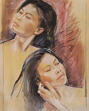 Louis Nagelkerke (1949) - Jonge vrouw achter een paneel