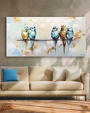 Monika Spiewak - Parrots - XXL - Oil Painting Stretched On The Frame - Ready To Hang - 1/1 Unique Piece
