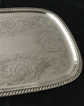 Magnifiek groot antiek Verzilverd dienblad met opulente gegraveerde rocaille versieringen - 上菜托盤 - Verzilverd 47 x 59 厘米