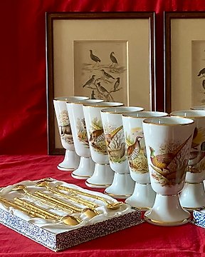 Limoges - 12 人用咖啡杯具組 (26) - Cuillères à la russe - 2 gravures - 瓷器, 鍍金, 紙, 木, 玻璃 - 12 mazagrans 和勺子