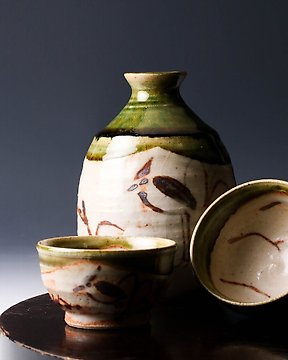 Oribe Ware 清酒杯套装(Shuki-Zoroi)—— Tamaoki Yasuo,Yasuo Kiln - 陶瓷 - Tamaoki Yasuo / 玉置保夫 (b.1941) - 日本 - 平成時期(1989年至今)