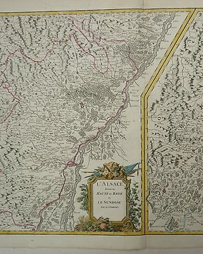 法國 - 斯特拉斯堡 / 巴塞尔 / 莱茵河; Robert de Vaugondy - L'Alsace divisée en haut Basse et Le Sundgau - 1751-1760