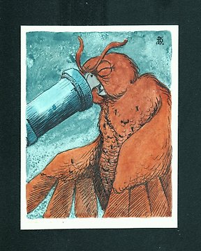 Dulieu, Jean (Jan van Oort) - 1 Original colour drawing - Paulus de Boskabouter - Oehoeboeroe kijkt door telescoop