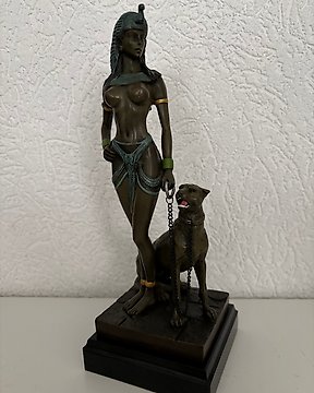 A.B. Bronze Austria - 雕刻, Cleopatra and her panther - 26 cm - 青銅色, 大理石