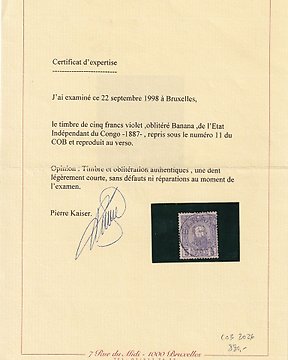 比利時剛果 - Leopold第二期5F清洁取消证书 - COB 11