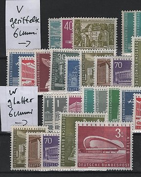 柏林 1954/1956 - Bauwerke III 和 Stadtbilder I/II 完整,具有橡胶处理差异。 - Michel 121-123, 140-154 v/w