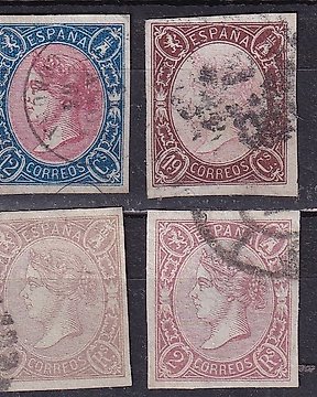 西班牙 1865 - 伊莎贝尔二世完整系列。关键价值标记 BPP。 - Edifil 69/73a - Bonitos