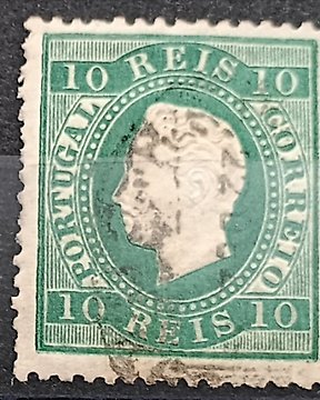 葡萄牙 1880 - 10雷伊斯邮票,D.Luis I,直带,新颜色,齿孔12 1/2,绿色蓝色。 - Mundifil. Numero 49 D.