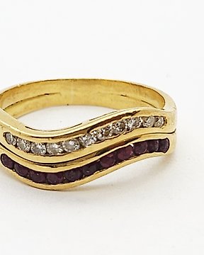 戒指 - 18 克拉 黃金 - 0.17ct. tw. 鉆石 (天然) - 紅寶石
