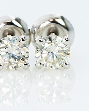 沒有保留價 - 耳環 - 14 克拉 白金 - 1.02ct. tw. 鉆石 (天然) - GWLab
