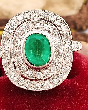 戒指 鉑金 祖母綠 - 鉆石