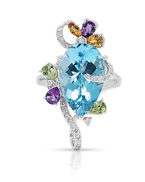 戒指 - 18 克拉 白金 - 8.72ct. tw. 黃玉 - 鉆石