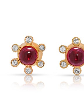 耳環 - 18 克拉 黃金 - 1.30ct. tw. 紅寶石 - 鉆石