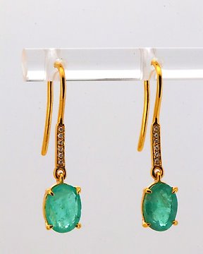 沒有保留價 - 耳環 - 14 克拉 黃金 祖母綠 - 鉆石