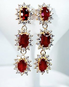 耳環 - 18 克拉 黃金 - 3.66ct. tw. 紅寶石 - 鉆石 - 耳环 - 法式夹