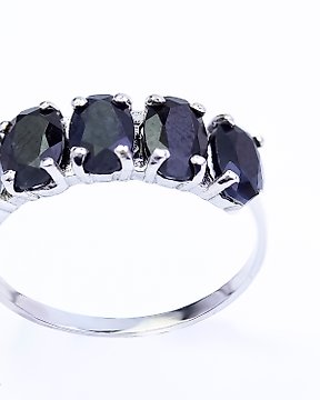 沒有保留價 - 戒指 - 14 克拉 白金 藍寶石 - US-7