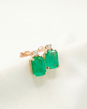 沒有保留價 - 耳環 - 14 克拉 玫瑰金 祖母綠 - 鉆石