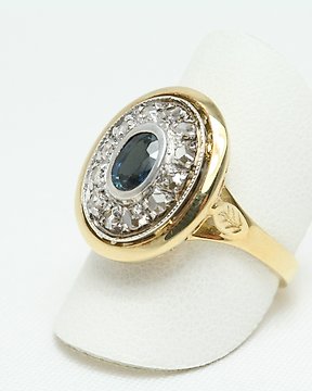 戒指 - 18 克拉 黃金 藍寶石 - 鉆石