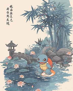 Collectibles & Co. - Japanase Art Style - “Squirtle Playing In The Bamboo” by Collectibles & Co (1/5)